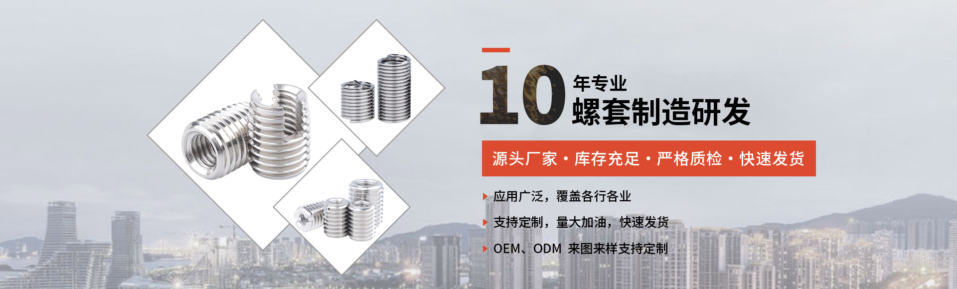 東臺市金智澤金屬制品有限公司(原東臺市鑫奧不銹鋼制品廠)是專業生產各種規格公制、英制、統一螺紋鋼絲螺套及配套、嚴格的質量管理體系、技術人才隊伍、完善的售后服務系統。近年來,公司技術人員曾多次開發和研制新產品,替換進口,尤其在螺紋連接新工藝上,做出了很大新貢獻。公司已通過ISO9001:2000質量體系認證。